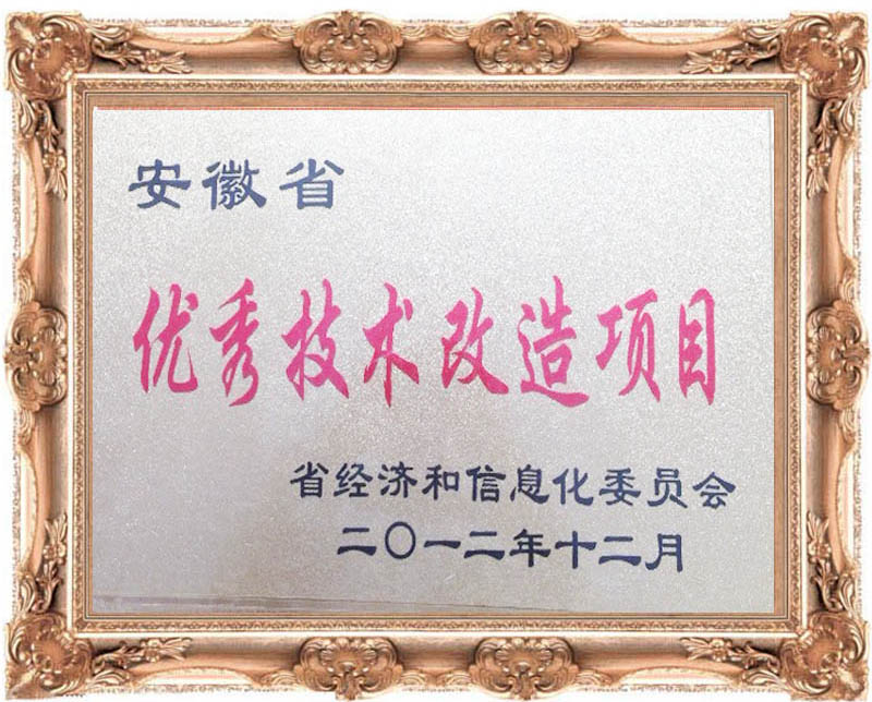 安徽省委,政府為促進我省經(jīng)濟發(fā)展方式轉變,推動工業(yè)經(jīng)濟又快又好的發(fā)展為目的,對于在推進技術該著工作中做出貢獻的單位和個人進行表彰,安徽環(huán)瑞憑借年產(chǎn)1200萬米安全型自限溫電熱帶,發(fā)熱電纜技術改造項目,從眾多企業(yè)中脫穎而出,被安徽省經(jīng)信委授予“優(yōu)秀技術改造項目”也是安徽省同行業(yè)唯一家獲此殊榮,此項榮譽顯示了安徽環(huán)瑞生產(chǎn)規(guī)模已成為省領先,國內先進的電熱帶、發(fā)熱電纜生產(chǎn)基地。