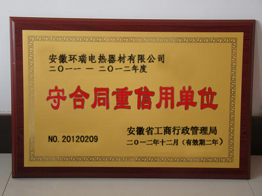 誠信是企業(yè)可持續(xù)發(fā)展的基石。十多年來,安徽環(huán)瑞電熱器材有限公司始終秉承“以人為本,以顧客為中心”的核心價值觀,恪守誠信經(jīng)營的理念,嚴(yán)格執(zhí)行《合同法》、《公司法》等法律法規(guī),不斷強(qiáng)化合同管理,完善合同管理制度,從根本上保證合同管理和履行的規(guī)范性。同時,大力開展創(chuàng)造“守合同重信用”企業(yè)活動,營造“守合同重信用”的良好氛圍,提高全體職工“守合同重信用”的自覺性和法制觀念,使企業(yè)合同管理不斷走向制度化、規(guī)范化、標(biāo)準(zhǔn)化。2011-2012年公司合同履行率100%。無任何違法、違約、違規(guī)及合同糾紛等不良行為,各合作單位對安徽環(huán)瑞的合同履行情況也都給予了高度評價。