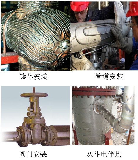 電熱帶的優(yōu)勢很多,其具體分類有自限溫電熱帶,恒功率電熱帶,MI加熱電纜,伴熱復合管。可針對各種防爆易燃,腐蝕區(qū)域的管道進行保溫伴熱。并且針對消防,太陽能熱水器,石油,電廠,環(huán)保在線監(jiān)測等開發(fā)了專用產(chǎn)品。此外,電熱帶可實現(xiàn)不同設備,部件的伴熱,以下有: