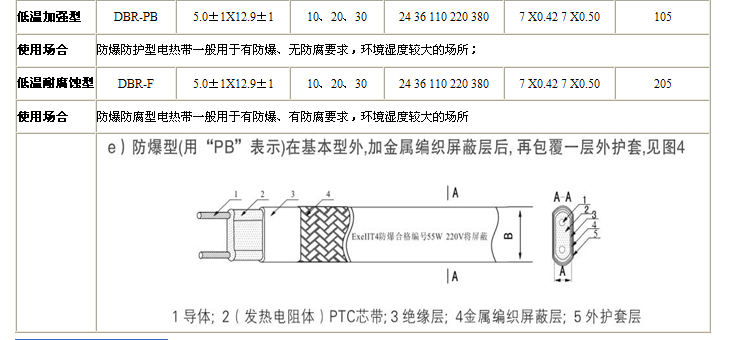 DBR-P 防爆型電熱帶一般用于有防爆、無防腐要求,環境濕度不大的場所;
