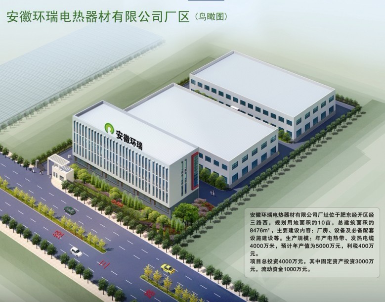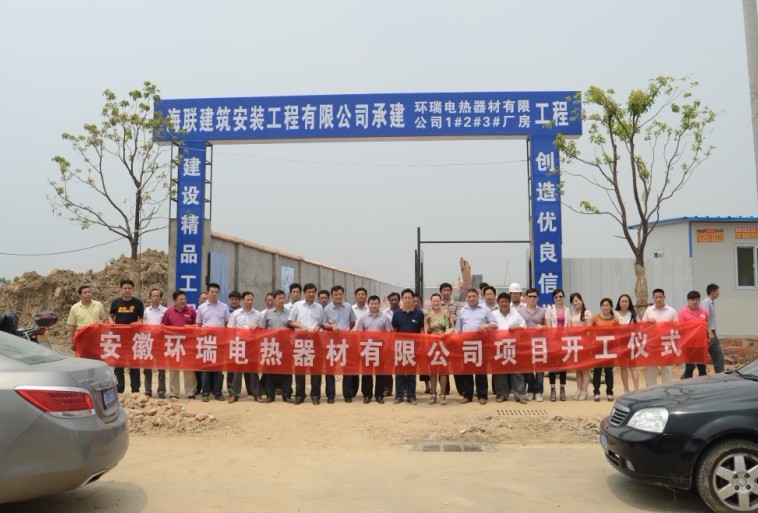 2012年6月05日肥東新城開發區領導及安徽環瑞電熱器材有限公司全體員工聚集在肥東開發區,進行新廠房開工剪彩儀式,獲得圓滿成功。該廠總建筑面積約8476平方米,主要建設內容:廠房、設備配套設施建設等,項目總投資4000萬余元。